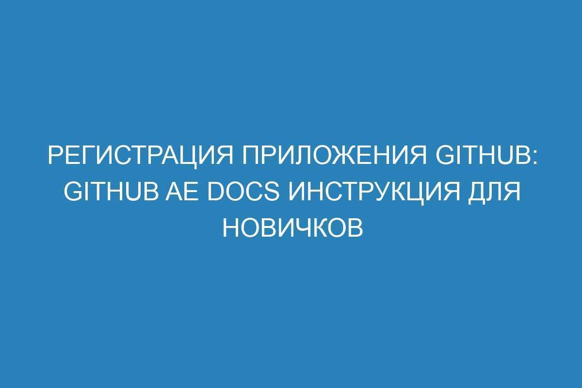 Регистрация приложения GitHub: GitHub AE Docs инструкция для новичков